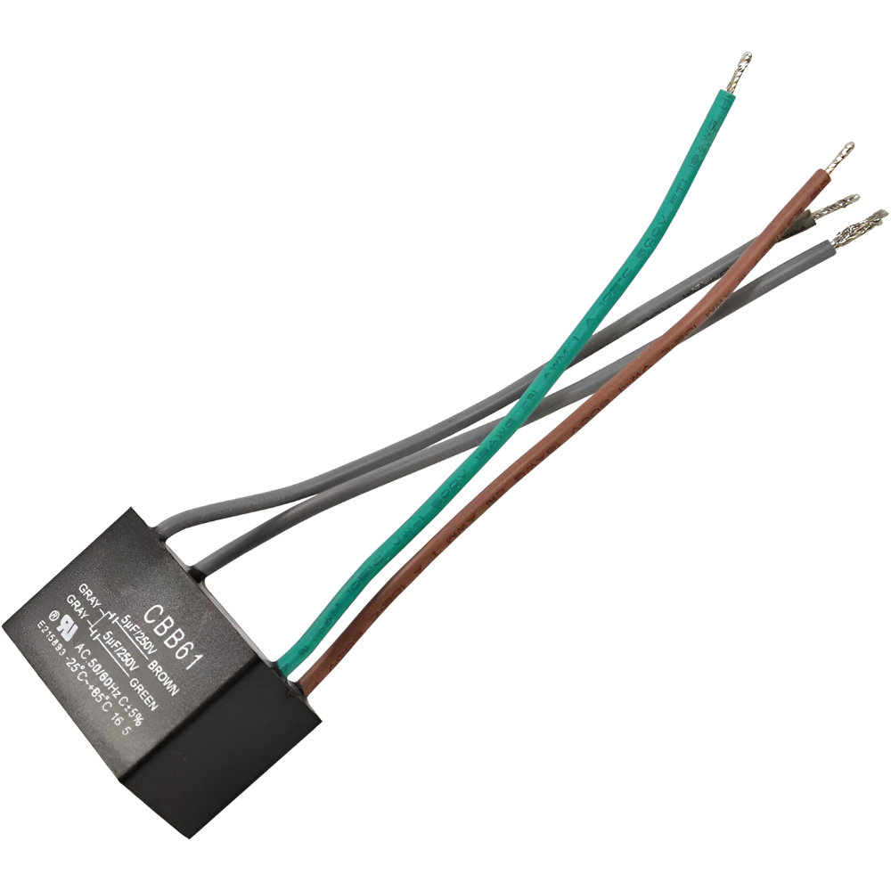 Improve your ceiling fan’s performance with this 4-wire CBB61 5uF + 5uF capacitor. Designed to control fan motor speeds smoothly and efficiently, this replacement capacitor helps your fan start quickly, change speeds properly, and run quietly. Made from high-quality materials and enclosed in a durable CBB61 case, it’s ideal for home repairs or professional service. Reliable, safe, and affordable — a quick fix to extend the life of your ceiling fan.